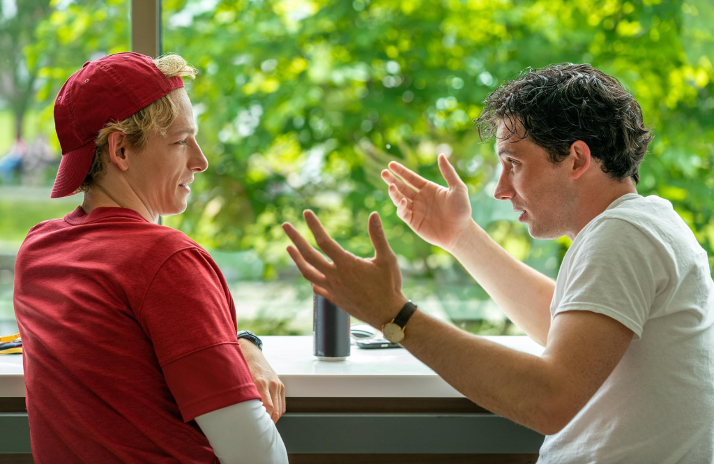 From the onset, fans of Luca Guadagnino have been clamouring for this film because of the possibility of overt queerness in the narrative and characters. Rest assured, it’s there, from the characters themselves to their choices, whether conscious or not; the film relies on the idea that this is not your typical heteronormative love triangle. However, Challengers is so uniquely attractive that the story is not just about Tashi’s little white boys getting with the hottest woman they have ever seen; Justin Kuritzkes’s screenplay is far more layered and complex for that oversimplified narrative trope. His script explores the emotional and mental state of these driven athletes who do not align on how they see their respective careers, the sport they love, and their place in the world. However, their relationship is not a random occurrence; their common interest, tennis, is what brings them together. Unlike any other sport, tennis, as Tashi explains, is about your relationship with the person opposite you. Whether Patrick and Art know it, they are deeply connected. Due to their shared love of tennis, they are in a relationship, which makes this situation with Tashi delightfully messy.