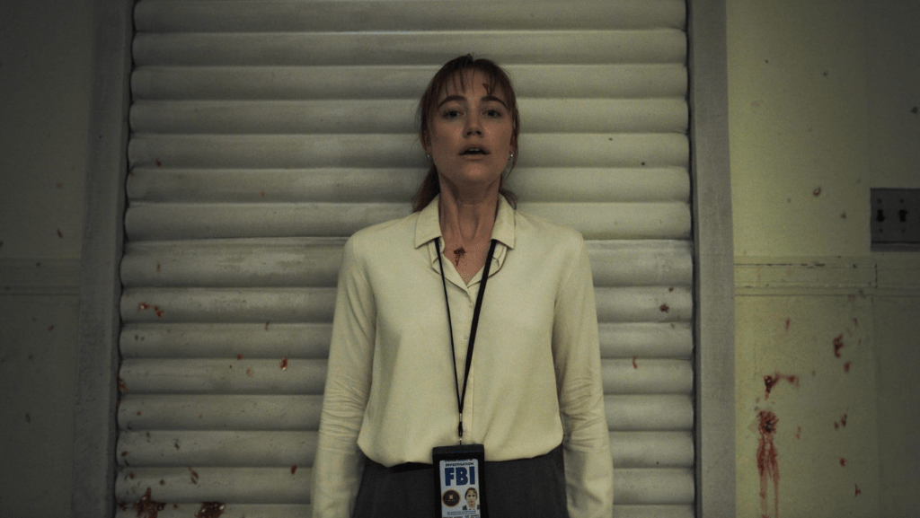 Scream queen Maika Monroe taps into the role of an introverted, haunted young FBI agent, Lee Harker. Along with her detective skills, she has a strong intuition. We see this being utilized initially during her first run as a rookie. After she excels there, she gets pulled into the case of the mysterious serial killer Longlegs, who has been able to continue his crime spree over decades without an end in sight. With no traces of him in the scenes besides cryptic letters, we’re left to watch as Harker assists Agent Carter (Blair Underwood) and Agent Browning (Michelle Choi-Lee) in uncovering who this nefarious entity is before he can kill again.